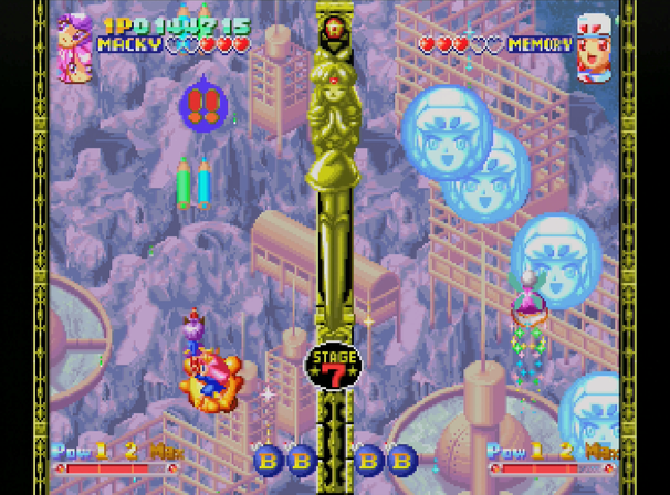 もとはアーケードゲームとして稼働していたゲームで、対戦型の名の通り左右に分かれた画面の中、それぞれで縦スクロールシューティングを行うというものになっております。